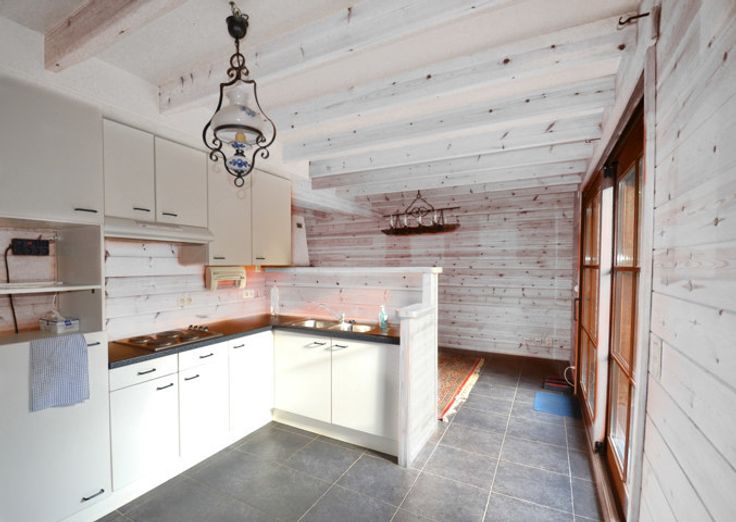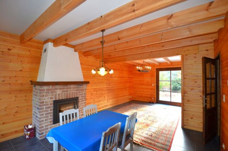 Bij binnenkomst komt u eerst in de ruime inkomhal met gastentoilet. Links heeft u toegang naar de gezellige leefruimte met open haard en zicht op tuin. Aansluitende loopt deze door naar de keuken. Deze heeft de nodige basisvoorzieningen zoals een koelkast, elektrisch kookvuur, dubbele spoelbak en een dampkap.