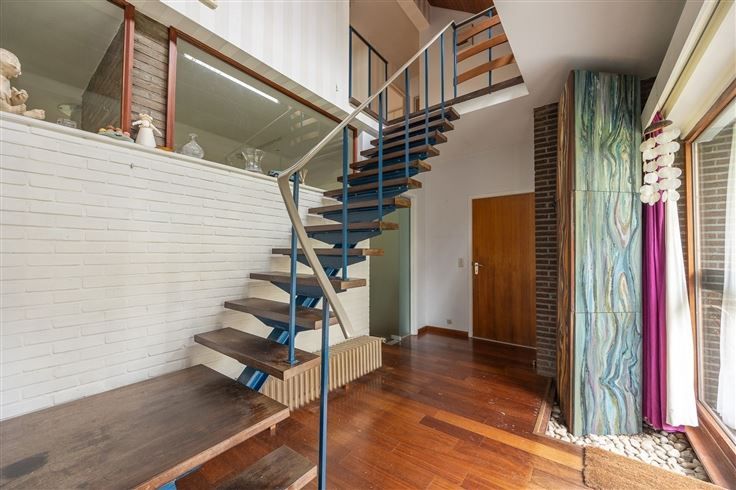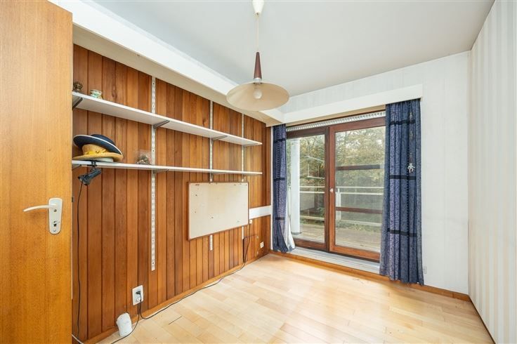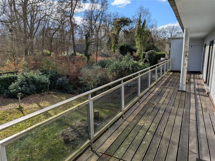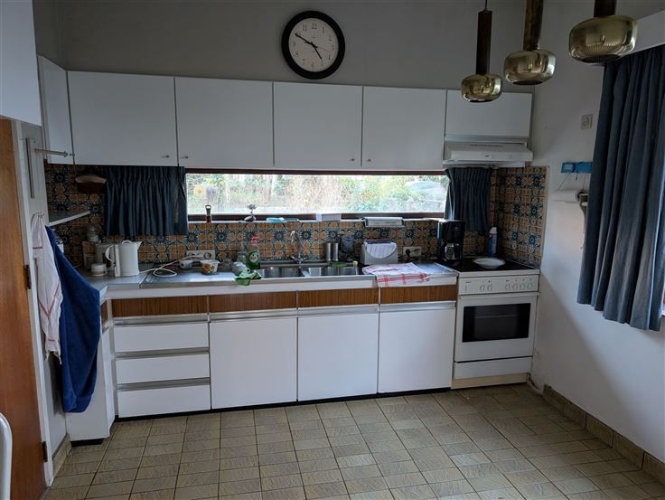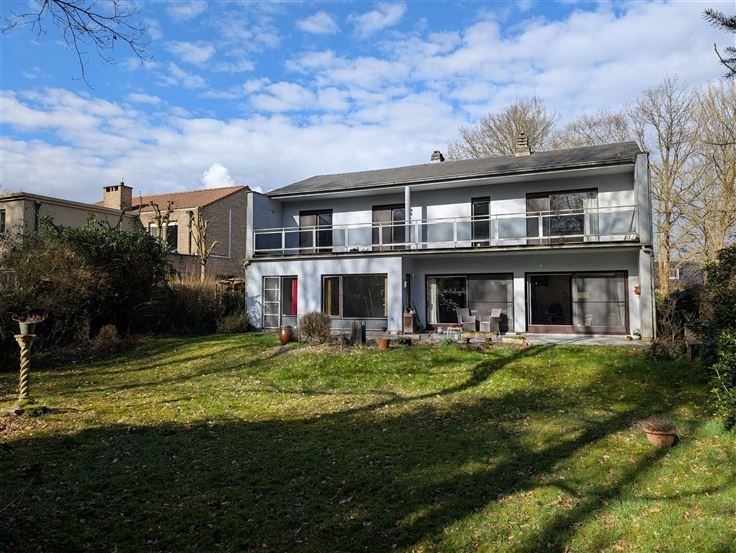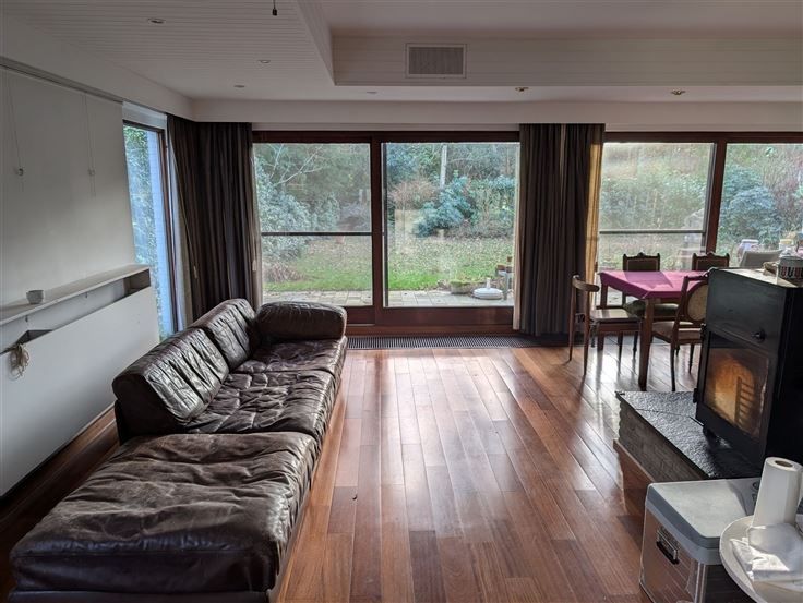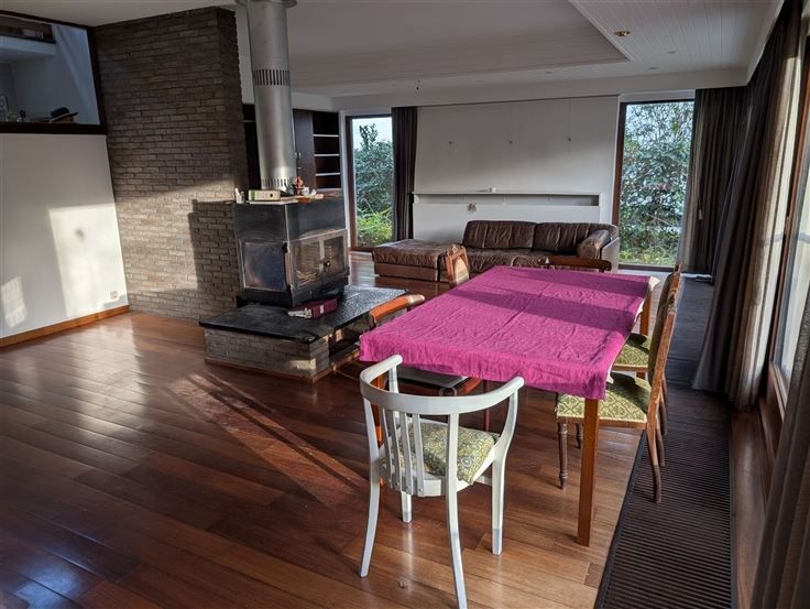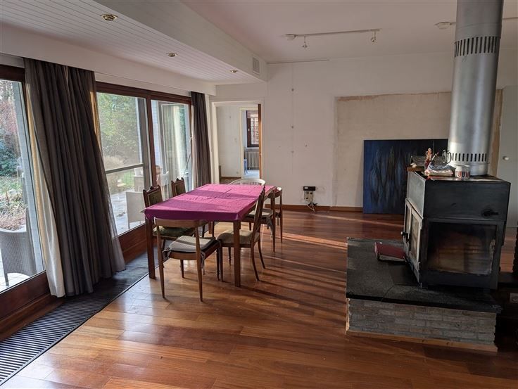 Te renoveren landhuis op zuid-georiënteerde tuin. Gelijkvloers : inkomhal op parket met gastentoilet, living op parket met centrale openhaard en schuiframen naar het terras en zuid-tuin, keuken toegankelijk via hal en living, 2 naast elkaar gelegen bureelruimtes / hobbykamers, grote garage met berging en CV-ruimte. Verdieping : nachthal op parket, ruime hoofdslaapkamer op vast tapijt met aanpalend terras op tropisch hardhout, oude badkamer met ligbad / bidet / 2 wastafels / toilet, 2e slaapkamer op grenen planché met ingemaakte kast en wastafel, 3e slaapkamer op vast tapijt met wastafel, 4e slaapkamer (via 3e slaapkamer) met wastafel, 2 zolderbergingen (waarvan 1 met raam). Diverse : CV op gas (condensatieketel), kruipruimte, natuurleien dak, zolder onder het dak met uittrekladder. De tijdloze uitstraling, solide bouwstructuur en leuke indeling maakt van deze villa een ideaal renovatieproject om hier uw woondroom waar te maken.