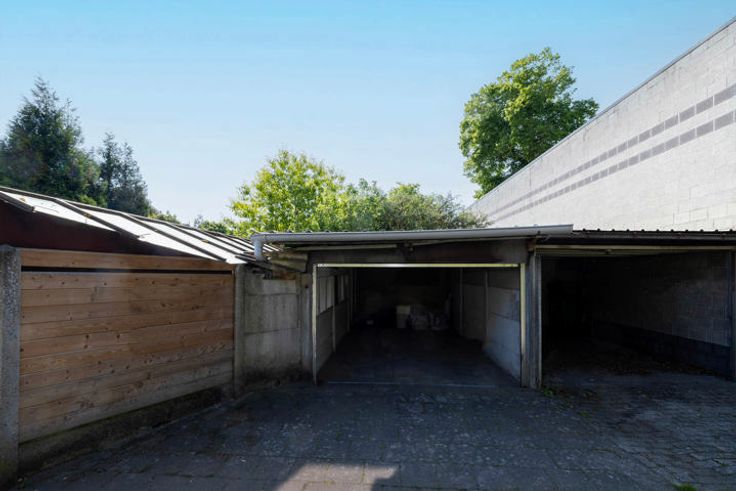 Prachtig aangelegde tuin met terras, tuinberging en serre; via wegenis naast de woning naar de achterliggende garagebox.