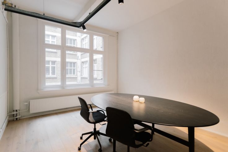 Het kantoor zelf is een verborgen parel. Een lofty appartement van ca 194 m² die momenteel dienstdoet als kantoor.