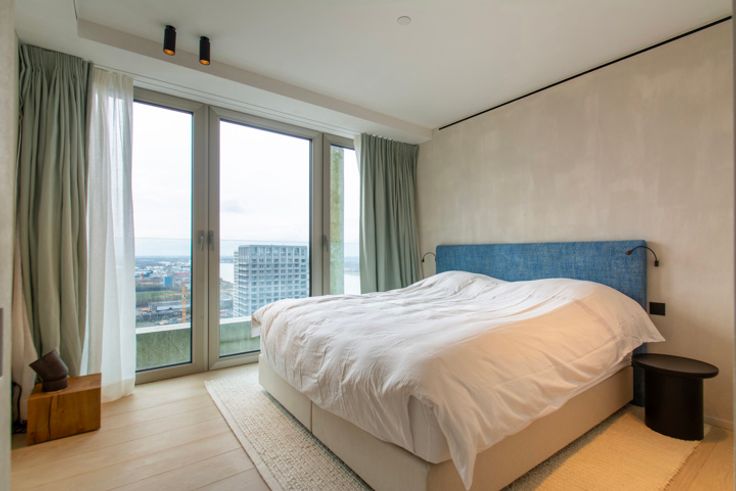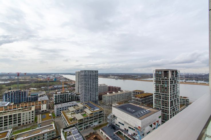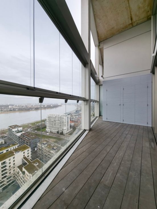 Op de bovenste verdieping van de iconische woontoren Zuiderzicht – hét architecturale pronkstuk van de skyline – wacht een uitzonderlijk stijlvol en energiezuinig duplex penthouse op zijn nieuwe eigenaar. Met 24 verdiepingen torent deze landmark boven Antwerpen uit en biedt het penthouse een panoramisch uitzicht dat simpelweg adembenemend is. Gelegen in het vooruitstrevende stadsproject Nieuw Zuid, combineert dit appartement het beste van twee werelden: luxueus comfort in een groene, autoluwe buurt aan de Schelde. Maar liefst 60% van deze bruisende wijk bestaat uit parken en pleinen – een realisatie van Studio Secchi-Viganò en Triple Living, die samen duurzaam en toekomstgericht wonen herdefiniëren. Het appartement zelf blinkt uit in ruimte, licht en verfijning. Dankzij de royale glaspartijen baadt elke kamer in natuurlijk daglicht, terwijl de twee ruime terrassen – georiënteerd naar het oosten en noordwesten – zorgen voor zon van 's ochtends tot 's avonds. Indeling: twee slaapkamers, twee stijlvolle badkamers, een open leefkeuken, gastentoilet en praktische berging. Een ondergrondse parkeerplaats is inbegrepen in de prijs. Met een EPC-label A, vloerverwarming, hoogwaardige afwerking én een toplocatie, is dit penthouse de ultieme kans voor wie op zoek is naar duurzaam, elegant en comfortabel wonen in één van de meest begeerde wijken van Antwerpen.