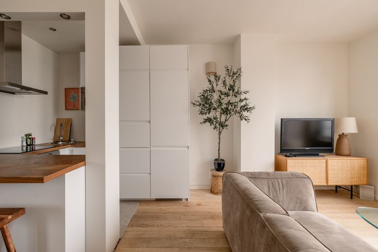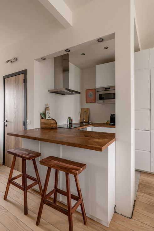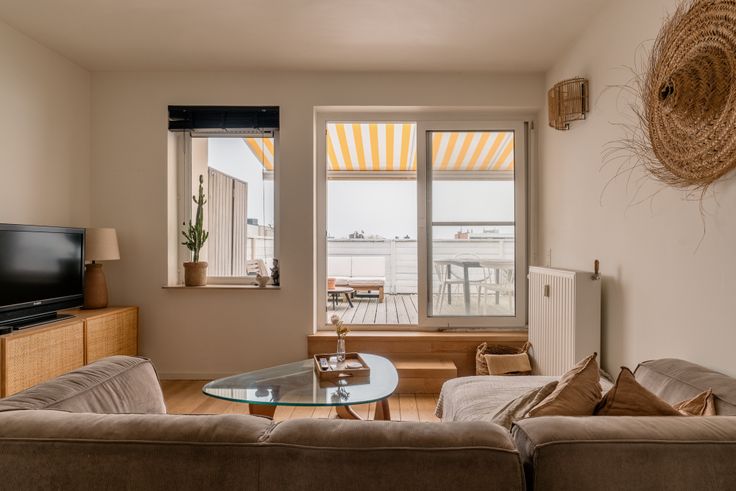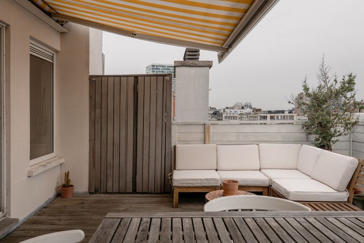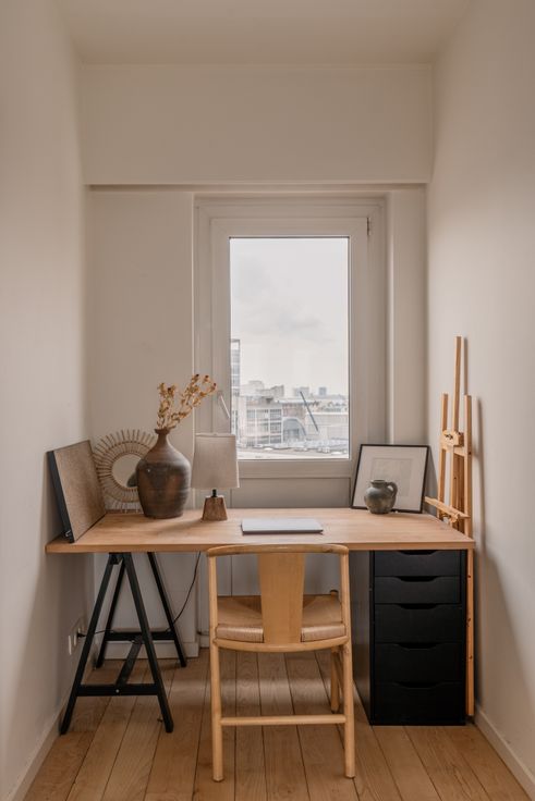 Een Franse ambiance in Antwerpen. Het is mogelijk, op de bovenste (9de) verdieping aan de Frankrijklei. Daar beschermt een witgeel gestreept zonnescherm tegen de ochtend- en namiddagzon. Nodig je vrienden uit voor het nuttigen van een heerlijk nostalgische ‘Le Diabolo’. In elkaar geflanst in de praktische keuken. Samen met de badkamer werd die 2 jaar geleden gerenoveerd. Als het weer toch eerder aan de Belgische kant is, organiseer je de aperitief gewoon aan het eiland. Het appartement heeft 1 slaapkamer en bovendien kan je in de ruimte tussen de slaapkamer en de badkamer een home office inrichten. Met uitzicht op het centrum van de stad. Net zoals vanuit het bad trouwens. Het appartement is petit mais sympa met een overvloed aan bergruimte in de privatieve kelder.