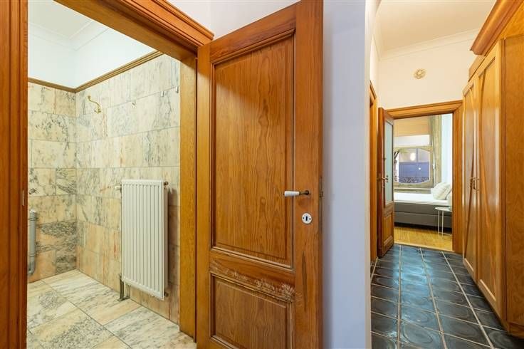 Gelijkvloers appartement met gezellige stadstuin in de gegeerde Sint-Andrieswijk Je komt het appartement zelf binnen in de grote inkomhal met ruime vestiairekast, die alle ruimtes met mekaar verbindt. De slaapkamer zit vooraan, heeft een verzorgde plankenvloer én een prachtig houten raamkozijn dat de originele balustrade mooi omkadert. Dankzij de rolluiken slaap je hier rustig en zonder enige inkijk. Weer in de hal heb je net voorbij het sierboogje rechts van je de badkamer, die betegeld is met een marmertegel en waarin je een ligbad met douchekop, aansluiting voor een was-droogcombinatie lavabo met spiegelkastje en een toilet hebt. Door het glas van de robuuste houten keukendeur kijk je de halfopen, rustieke keuken binnen, met de grote leefruimte erachter. De zwarte tegels van de hal lopen door in de keuken en ook hier blijken de volhouten kastdeurtjes daar goed bij te passen, net zoals het natuurstenen werkblad en de betegelde spatwand. Je hebt hier een gasfornuis, dampkap, spoelbak en heel wat kasten. De leefruimte baadt in het licht dankzij de kamerbrede schuiframen die uitgeven op dé troef van dit appartement: de gezellige stadstuin van 24 m². De gekaleide witte muren zorgen voor extra cachet en mits enkele welgeplaatste outdoor meubeltjes en sfeervolle buitenverlichting, creëer je hier in geen tijd een unieke buitenplek midden in ’t stad. Voor meer info: https://www.immovasta.be/panden/gegevens/13908/