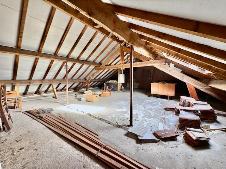 Momenteel zijn er 4 ruime slaapkamers, 2 van 13 en 2 van 17 m² maar de zolder (op beton!) van 75 m² zou extra mogelijkheden kunnen bieden.