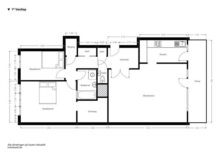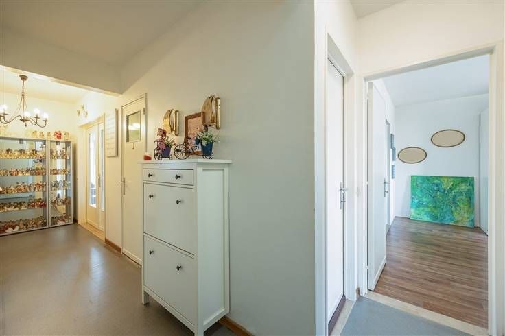 Je komt er binnen in de ruime, centrale inkomhal, die een vestiairekast, apart toilet én een videofoon heeft. Onder de linoleum zit nog de originele blokjesparket, die je ook terugvindt in de grote, lichte leefruimte ernaast. De leefruimte is met z’n 40 m² heb je hier heel wat plaats voor een eettafel en zithoek, met zicht op je zuidgerichte terras vooraan. De aanpalende, op maat gemaakte keuken is helemaal geïnstalleerd, met tijdloze witte kastjes in hoogglans, een grijs werkblad en een lichtgrijze XL-tegel. Ook van hieruit stap je zo je terras op. Je hebt hier in de keuken een betegelde spatwand, een gasvuur, dampkap, spoelbak, afwasmachine, grote koelkast met diepvriezer, heteluchtoven en heel wat kastruimte. Wanneer je verder doorloopt in de hal, heb je een handige berging, een retro badkamer met ligbad, lavabomeubel en aansluiting voor je wasmachine, met helemaal achteraan de twee slaapkamers. Die zijn noordgericht, en hebben een verzorgde linoleumvloer, rolluiken en vliegenramen. Met 11,5 m² en 20 m² zijn ze enorm ruim, waarbij de master bedroom ook nog een dressing heeft. Je zit hier net buiten de stad, met allerlei openbaar vervoer in de buurt en de Ring vlakbij. Het Te Boelaerpark en het Rivierenhof zijn niet veraf en je bent ook zo in allerlei winkels, van kleine buurtwinkels tot grotere supermarkten. Bonus: mogelijkheid tot aankopen ondergrondse parkeerplaats aan €20.000. Meer info: https://www.immovasta.be/panden/gegevens/14168/