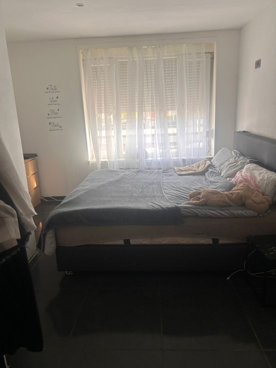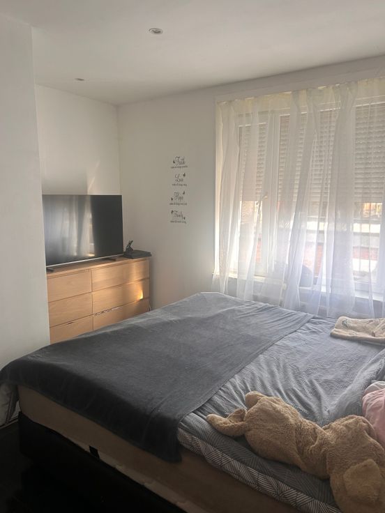 twee slaapkamers, aparte wc, badkamer (ligbad, lavabo).