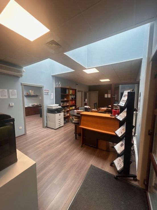 Bureelgedeelte omvattende hal, ontvangstbalie, vier