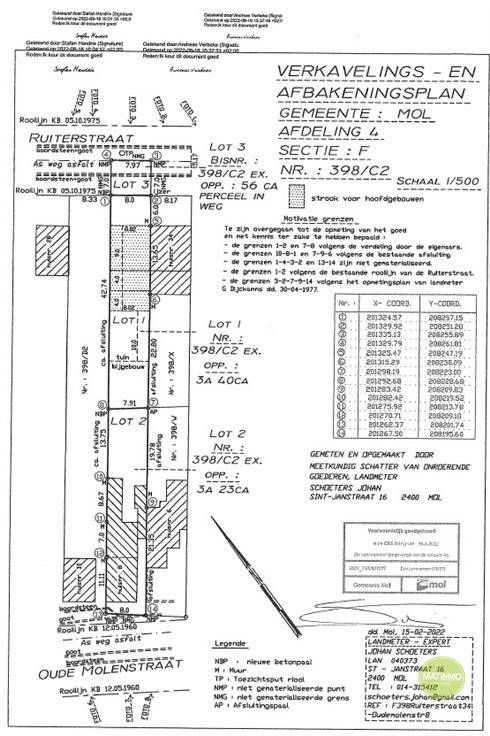 Ontdek deze prachtige bouwgrond gelegen in Mol, met een totale oppervlakte van 340 m². Dit perceel biedt een ideale kans voor het realiseren van uw droomwoning. Gelegen in een rustige en aangename buurt, geniet u hier van een perfecte mix van privacy en nabijheid van essentiële voorzieningen. Bouwgrond als investering kan niet geklopt worden: de locatie blijft en de grond wordt steeds meer waard naarmate er minder beschikbaar is. Bouwgrond in het centrum van Mol is schaars en gegeerd en zal dat ook blijven. Gesloten bebouwing: de meest energievriendelijke oplossing voor de toekomst. De oriëntatie van het grondstuk laat bebouwing toe die de achterkant van de woning volop van de zon laat profiteren (en eventueel zonnepanelen laat renderen). Toelating om kangoeroewoning te integreren in de woning. Ideaal voor de opvang van (schoon)ouder(s) of mensen met een lichamelijke beperking. Toelating om een zeer ruime opbergruimte in de tuin te bouwen waardoor u zeer veel kwijt kan in de tuinberging. Rustige, kindvriendelijke buurt om te wonen, weinig of geen last van omleidingen Verkavelingsplan en verkavelingsvoorschriften kan u terugvinden op onze website : www.matimmovastgoed.be