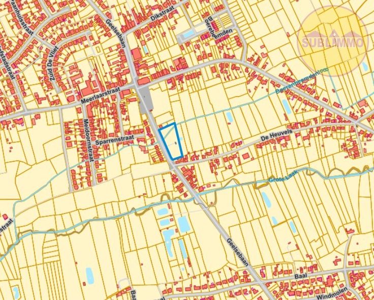 Projectgrond 6.456m² in het centrum van Vorst-Meerlaar. Perceel 0134M en 0135E.