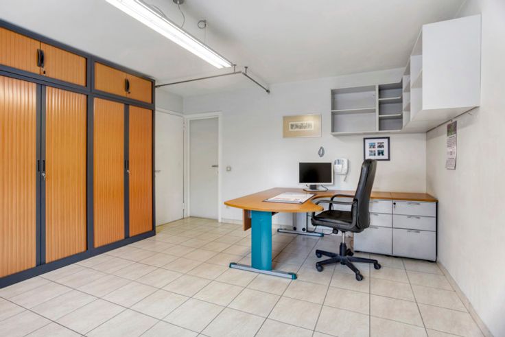 Ideaal voor een vrij beroep of combinatie woon/werk. Gelegen op wandelafstand van het centrum van Kontich. GELIJKVLOERS Inkomhal voorzien van gastentoilet met vooraan ruime praktijkruimte (ca. 21m²) met wachtruimte (ca. 11m²). Aansluitend een 2de praktijkruimte (ca. 25m²), eveneens met wachtruimte (ca. 8m²). Achteraan vinden we het privé-gedeelte terug voorzien van open keuken op tegelvloer met zicht en toegang tot het terras. Badkamer met douche, lavabo met spiegelkast en toilet. Berging aanwezig. Gemeenschappelijke fietsenberging aanwezig (ondergronds).