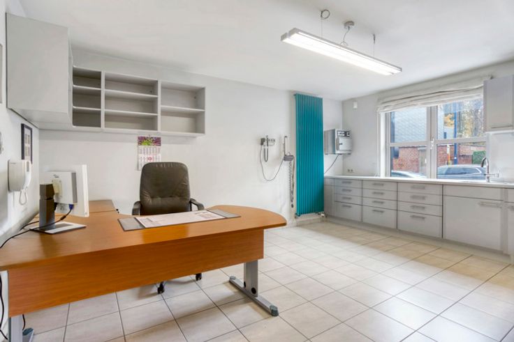 Centraal gelegen (dokters)praktijkruimte die kan omgevormd worden tot een 2-slaapkamerappartement.