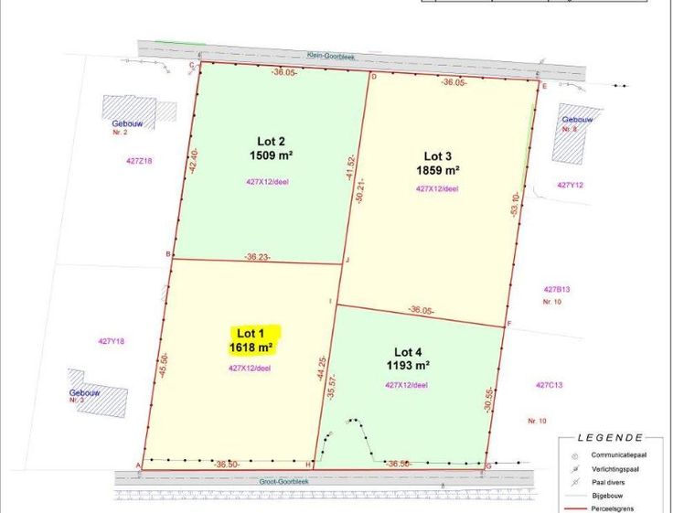In gebied voor verblijfrecreatie. Lot 15b van verkaveling 095/014(4) dd 13/12/1976, kadastraal gekend sectie C, deel van nummer 427/X/12/P0000. Met een oppervlakte van 1618 m², 36,50 m aan de straat, lot 1 op het splitsingsplan. Stedenbouw: gebied voor verblijfrecreatie. Gvr, Gvg, Gmo, Gvkr, Vv. P score: A