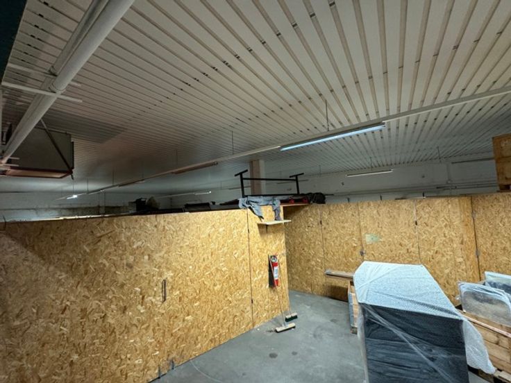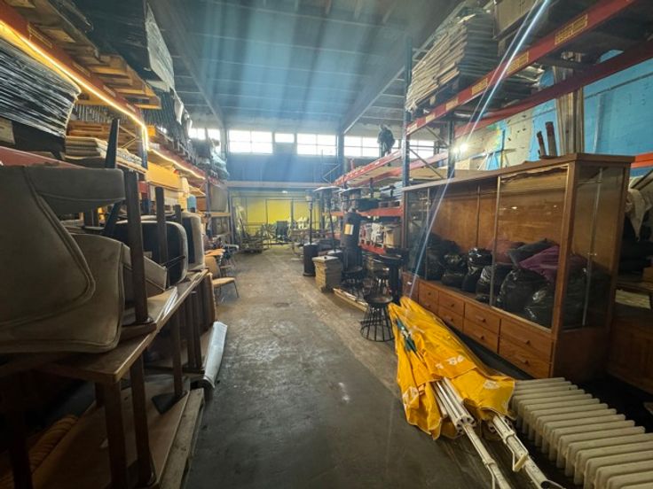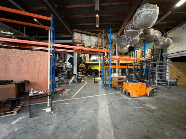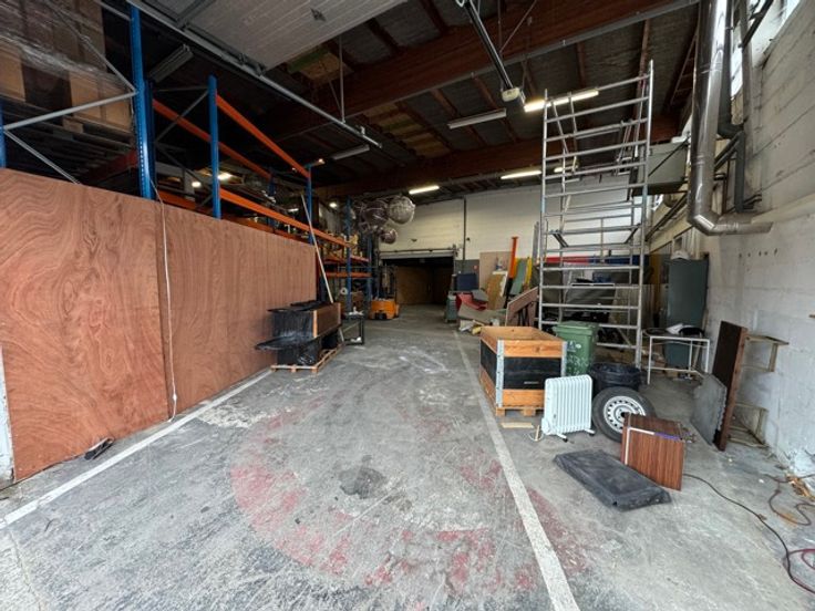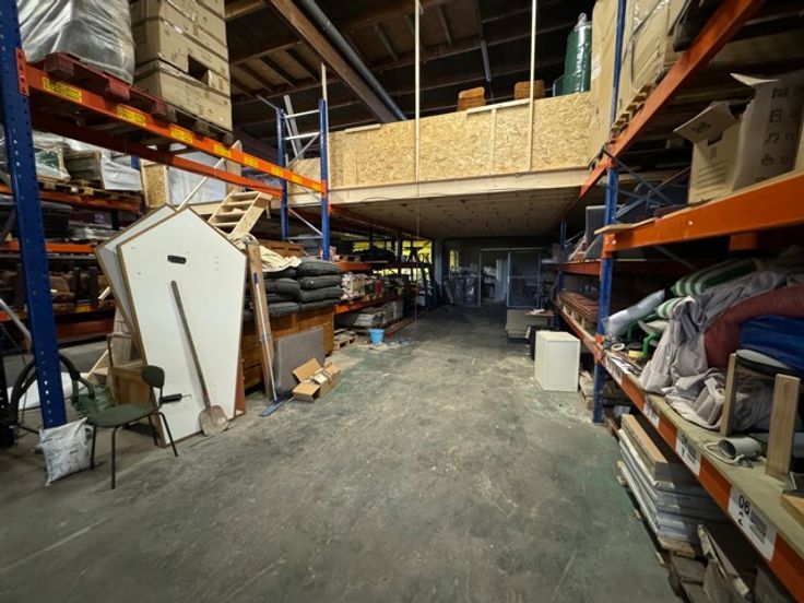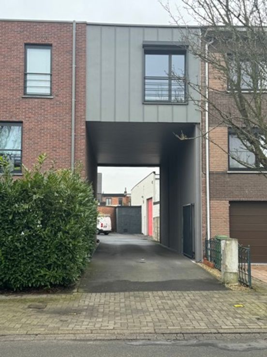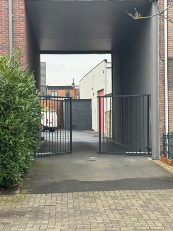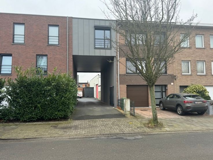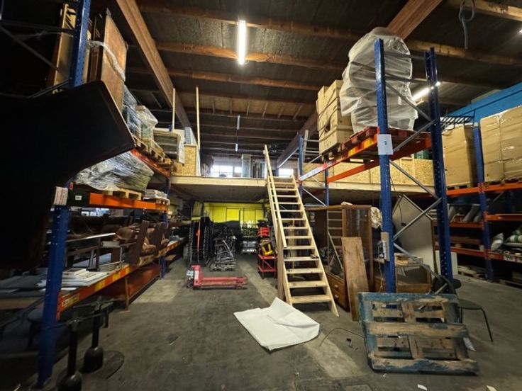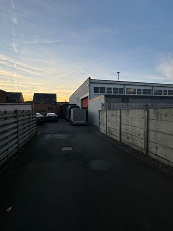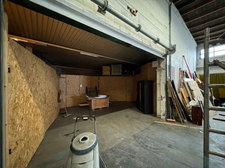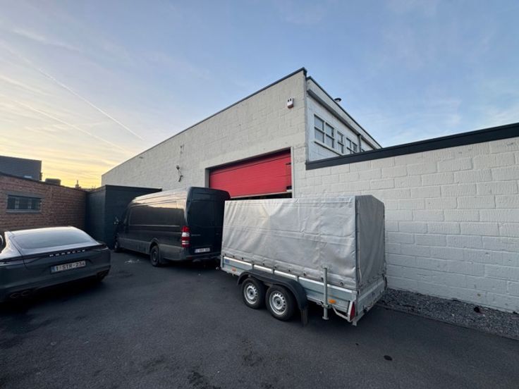 Gerenoveerd magazijn te koop (1.013 m²) met grote sectionaalpoort en mezzanine, gelegen in rustige woonwijk te Wilrijk, vlakbij de A12.