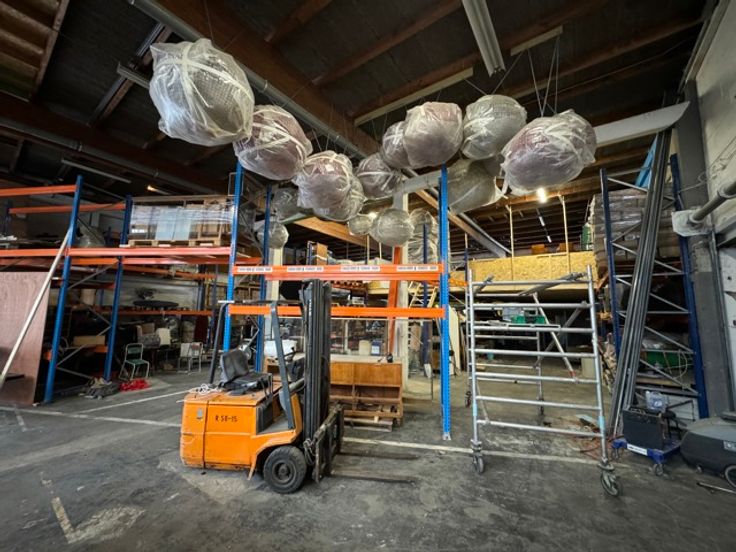 Achteraan en vooraan zijn er iets lagere gedeeltes, opgesplitst in kleinere units en sanitaire ruimte.