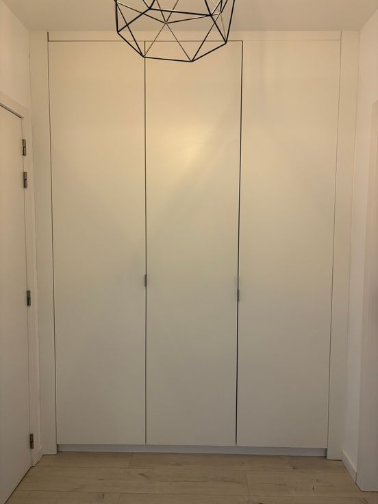 We komen binnen in de inkomhal. Deze is voorzien van een ingemaakte kast voor jassen/schoenen en ander materiaal proper in op te bergen.