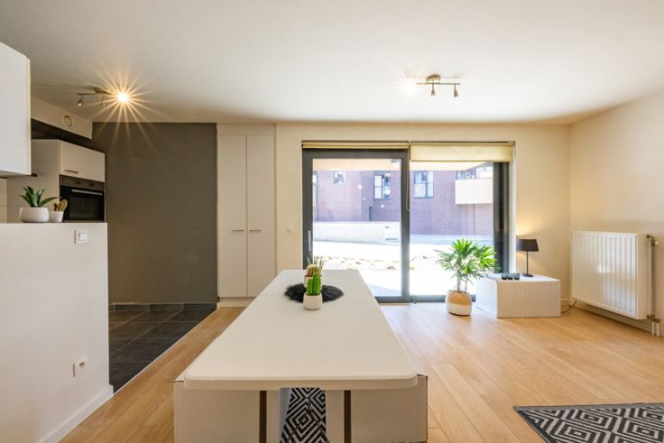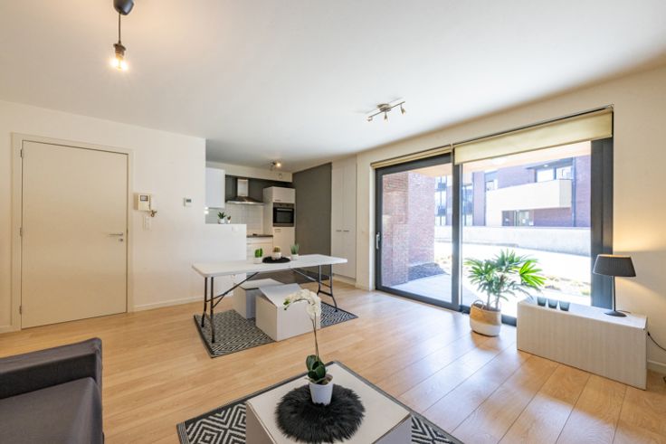 Te koop GELIJKVLOERS APPARTEMENT MET TERRAS INCL ONDERGR. PARKEERPL