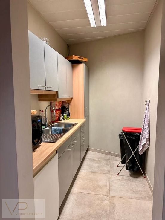 Het gelijkvloers omvat een ontvangstruimte, twee afgesloten kantoren, een ruime vergaderzaal, landschapskantoren, een volledig uitgeruste keuken, berging en afzonderlijke toiletten. Recentelijk werd het kantoor volledig gerenoveerd met aandacht voor energie-efficiëntie. Verwarming en koeling gebeuren via een lucht-lucht warmtepomp, wat resulteert in een gunstige EPC-score van 250 kWh/m². Bovendien is er voldoende parkeergelegenheid voor de deur.