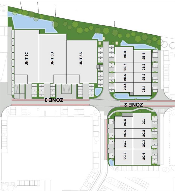Deze KMO-ontwikkeling omvat units tussen de 180 en 288 m² en in een latere fase ook magazijnen van 1.233 tot 1.268 m². De units worden opgeleverd in Q2-Q3 2025.