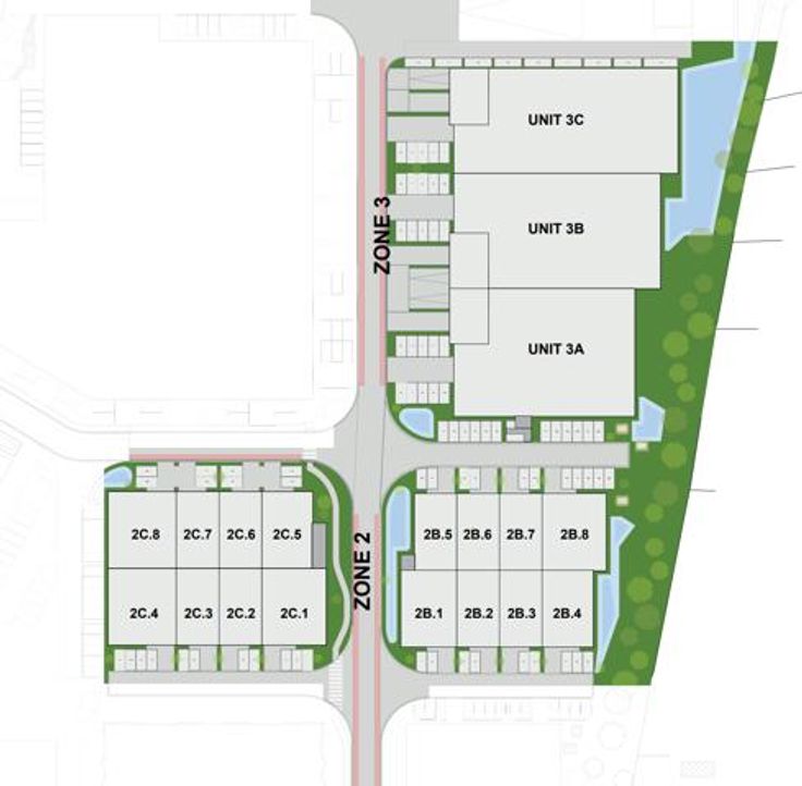 Er wordt aanzienlijke aandacht besteed aan het groene karakter van het bedrijventerrein, waarbij 60% van de bestaande structuren worden hergebruikt. Groendaken en fotovoltaïsche panelen zullen worden geïnstalleerd op alle nieuwe delen, en elke twee units zullen worden voorzien van een regenwaterput. Energieoverschotten zullen worden opgeslagen via batterijen, en er zullen oplaadpunten aanwezig zijn voor elektrische voertuigen.