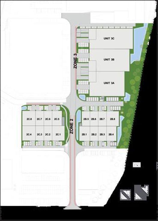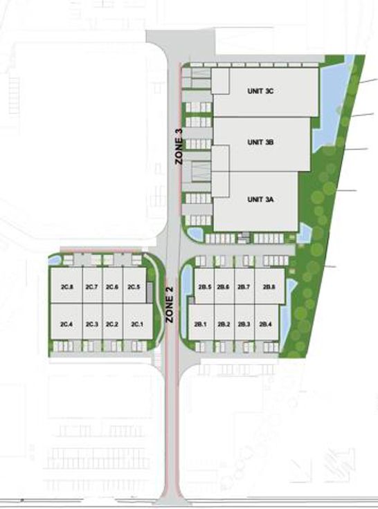 2e fase: 3 KMO-units met een oppervlakte tussen 1233 m² en 1268 m²