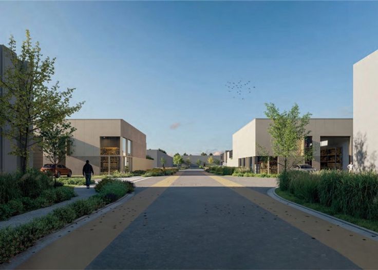 - Parkeerplaatsen & gemeenschappelijke groenzone incl. WADI (voorzieningen voor elektrische voertuigen (wachtbuis))