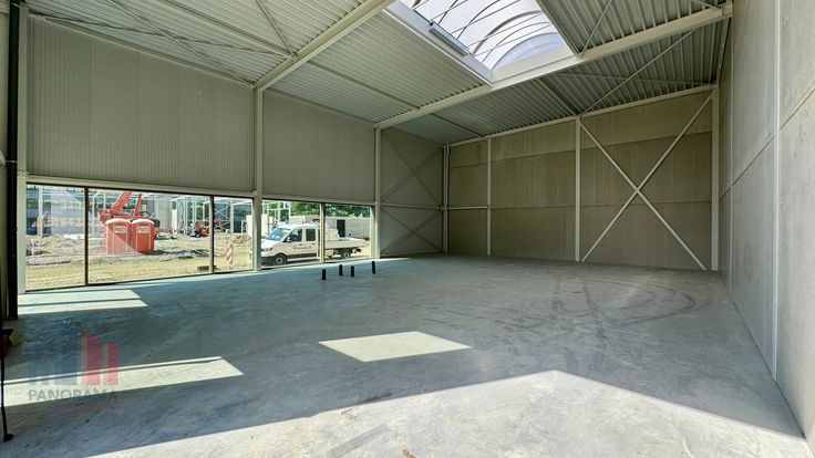 Het casco magazijn (brandklasse C) met een vrije hoogte van 6 m is opgebouwd uit een staalconstructie in combinatie met geïsoleerde sandwich- en betonpanelen. Verder is de loods voorzien van o.a. 4 automatische sectionale poorten (4 m B x 4,20 m H), lichtstraat met rookluik, polybetonvloer en individuele nutsleidingen.