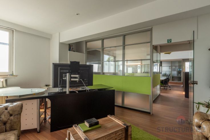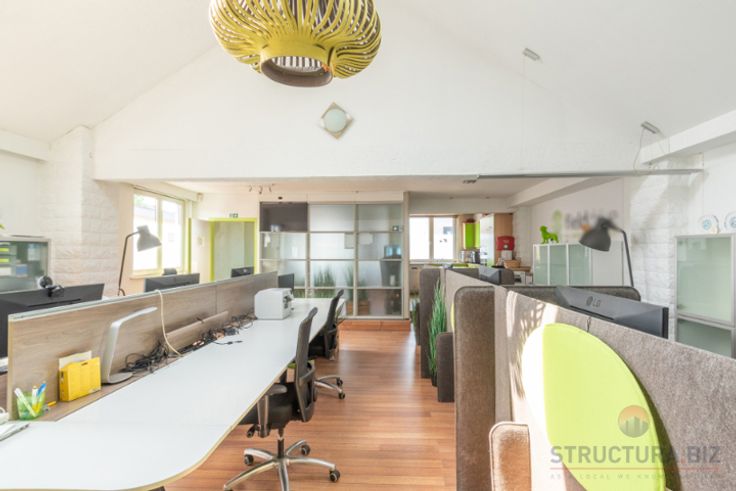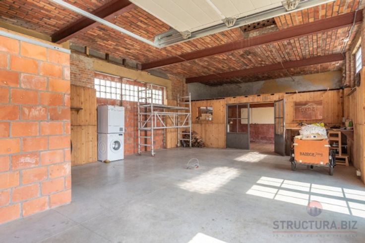 Mooi bedrijfspand met op de gelijkvloers een magazijn van +/- 300m² bereikbaar via een sectionale poort.