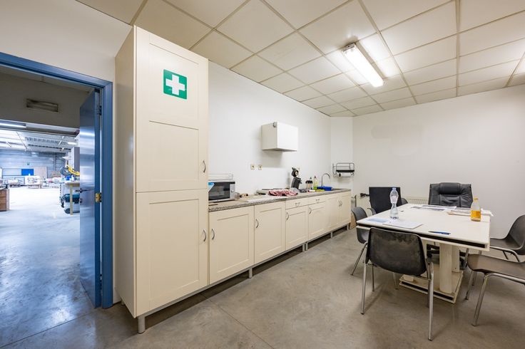 Dit polyvalent gebouw bestaat uit een atelier, magazijn, kantoor en showroom. Tevens bevindt er zich ook een appartement op de eerste verdieping. Het gebouw ligt op 10 minuten van de E19 Antwerpen – Breda bij de afrit Sint-Job.