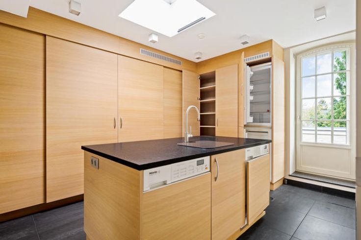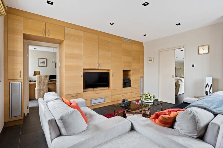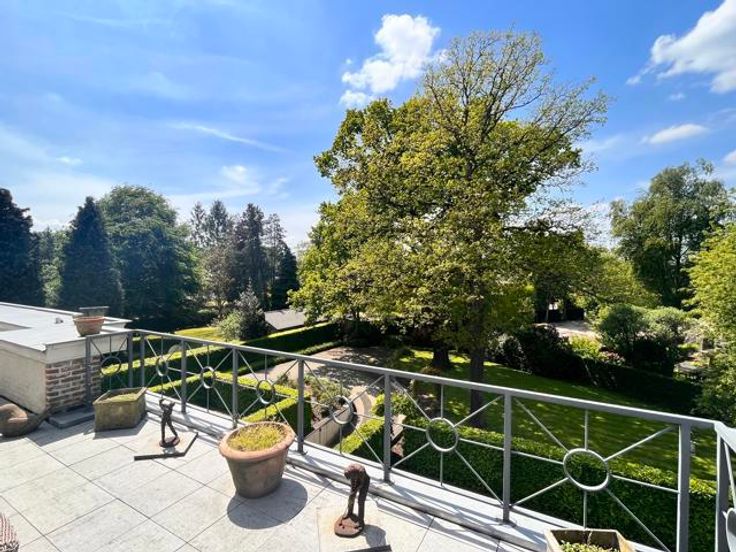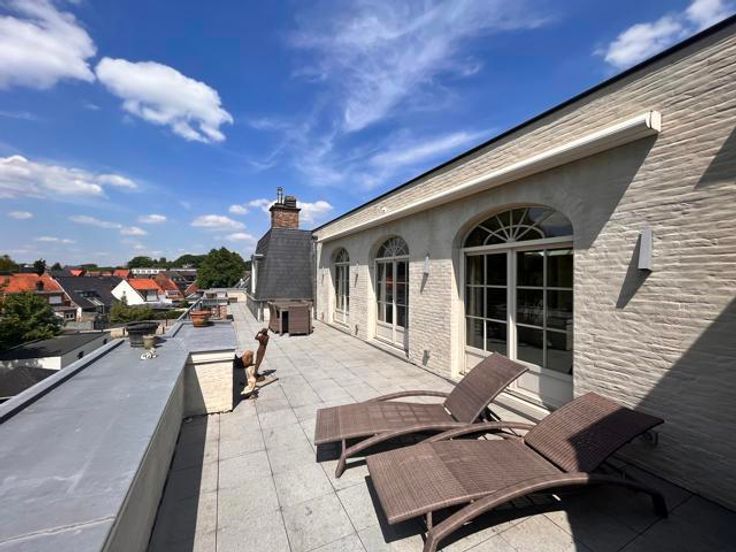 2DE VERDIEPING Via de lift of private traphal komt u rechtstreeks uit in de inkomhal 45 m². Riante leefruimte 67 m² met gashaard. Prachtige Krijnen keuken 35 m² met granieten werkblad, kookeiland en ontbijthoek, luxueus geïnstalleerd. Bijkeuken/wasplaats 21 m² voorzien van ingebouwde wasmachine, droogkast, koelkast en diepvriezer. Via de keuken en wasplaats heeft u eveneens toegang tot het terras. Bureel met bibliotheek kasten. Audio - visuele kamer 24 m², ingebouwde smart TV en Bose en Wilkins speakers. MASTERGEDEELTE Via veiligheidsdeur heeft u toegang tot het mastergedeelte bestaande uit: Nachthal met appart toilet en lichtkoepel. Hoofdslaapkamer 28 m² met ingemaakte kastenwand en ingebouwde TV. Hoofdbadkamer 15 m² met douche, bubbelbad, dubbel lavabo meubel en spiegelkasten. GASTENGEDEELTE Inloop dressing toegang tot 2de slaapkamer 22 m², ensuite badkamer 12 m² met douche, bubbelbad, enkele lavabo. Nachthal met toilet. Het appartement is volledig omringd door een zonnig terras, mooi uitzicht op de prachtig aangelegde tuin. Het terras is voorzien van zonnewering, verlichting en buitenspeakers. KELDER Dubbele garage zonder tussenwand met automatische toegangspoorten en grote kelderberging. De vermelde “bewoonbare oppervlakte” is gebaseerd op de “bruikbare vloeroppervlakte” zoals vermeld in het EPC. POSITIEVE PUNTEN Enorme lichtinval door dakkoepels Uitzonderlijk groot terras +/- 100 m² Hoogwaardige afwerking, overal dezelfde materialen en kleuren Alle beschikbare ruimtes