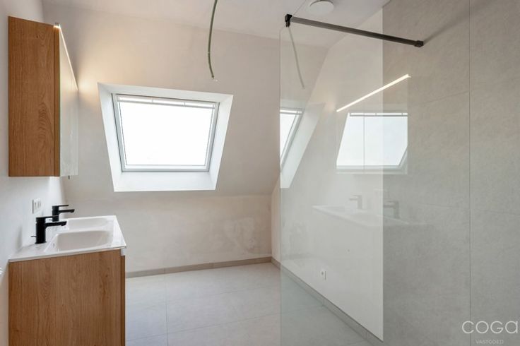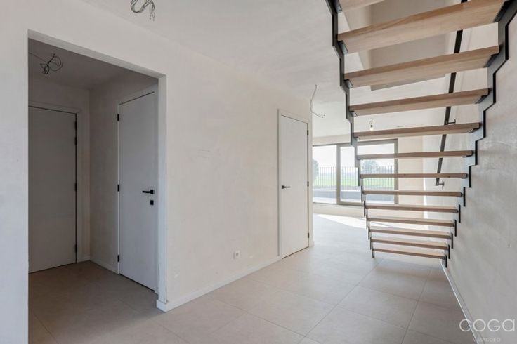 Welkom in Residentie “Leonhardus” – wonen met uitzicht, rust én bereikbaarheid. Dit kleinschalige, energiezuinige project combineert het beste van twee werelden: een adembenemend uitzicht op groen en een uitstekende ligging met alle voorzieningen binnen handbereik. Strategisch gelegen aan de ringweg, met vlotte verbindingen naar het openbaar vervoer, de E19 en station Noorderkempen. Appartement 1.2 – Duplex met 2 slaapkamers (131 m²) Deze ruime duplex van 131 m² biedt een moderne en comfortabele woonbeleving. Via het grote schuifraam in de lichtrijke leefruimte kom je rechtstreeks op het zuid gerichte terras terecht – perfect om te genieten van rust en zon. Aansluitend bevindt zich een open eetruimte en een volledig ingerichte keuken, ideaal voor wie graag kookt of gasten ontvangt. Verder op deze verdieping: een gastentoilet en een handige berging. Een stijlvolle open trap in de leefruimte leidt naar de bovenverdieping, waar je twee slaapkamers terugvindt, samen met een volledig uitgeruste badkamer. Een ideale gezinswoning in een appartementenvorm – met alle voordelen van ruimte, licht en comfort. Geen keuzestress of extra wachttijden meer: de appartementen zijn volledig afgewerkt en klaar voor gebruik. De zuidgerichte terrassen zorgen voor overvloedig natuurlijk licht en laten u ten volle genieten van de buitenomgeving. De leefruimtes bieden een panoramisch zicht op de omliggende natuur. Elk appartement een private parkeerplaats én een aparte berging. Royale installati