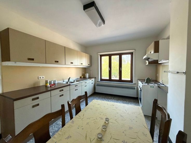 Goedgelegen grote DEGELIJKE woning met ATELIER, praktijk, woongedeelte en diepe tuin. Ideaal voor mensen op zoek naar combinatie werken en wonen, of mensen op zoek naar ruimte! INDELING: grote garage/atelier, handige praktijk met wachtkamer, extra leefruimte en keukenplaats. Onderkelderd. Grote diepe TUIN. Op het verdiep bevinden zich de leefruimte, keuken, badkamer en 2 slaapkamers. Grote zolder die extra mogelijkheden biedt. TROEVEN: degelijke bouw met betonnen gewelven, dakconstructie in goede staat, zonnepanelen met certificaten! Bezoek na afspraak met IMMO BEGUIN: tessa@immobeguin.be