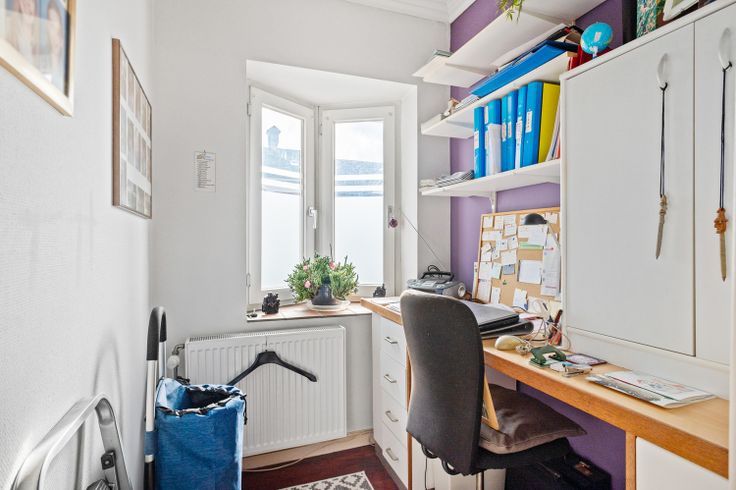 U betreedt het appartement via de inkomhal, dewelke u brengt naar de bureau en leefruimte.