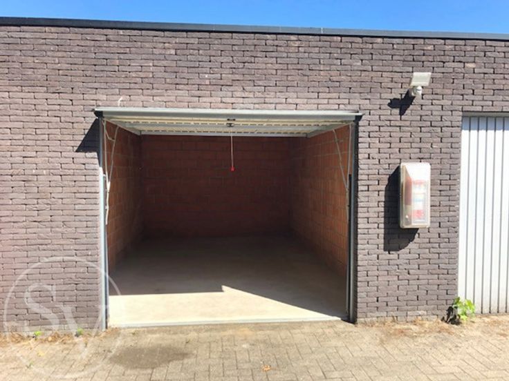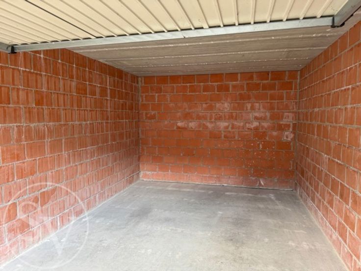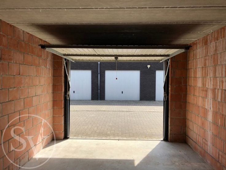 Manuele, metalen kantelpoort (doorrij afmetingen: 2,38 x 2m). Geen elektriciteit voorzien in de garageboxen. Gemene delen wel verlicht.