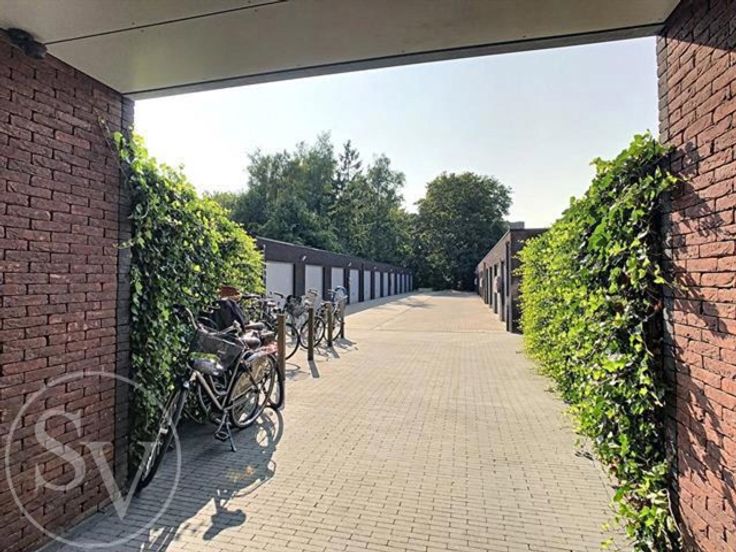 Complex van 24 garageboxen gelegen achter een appartementsgebouw.