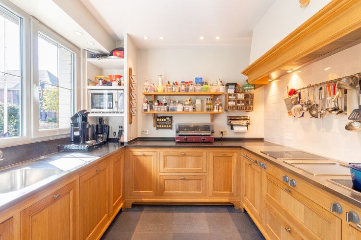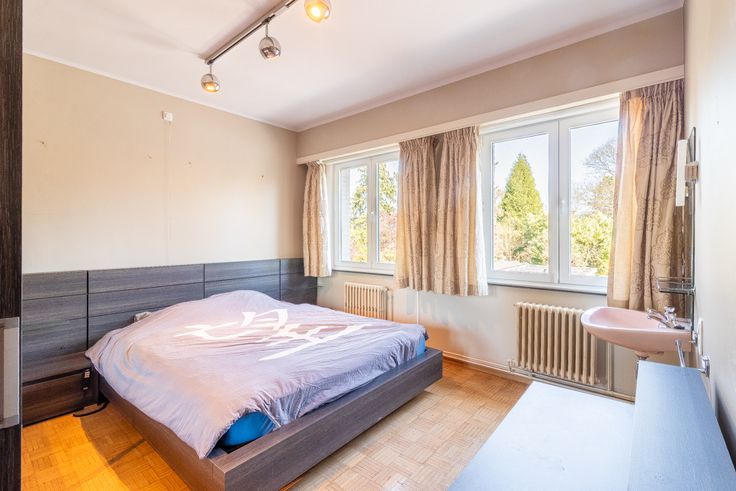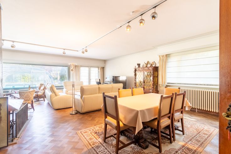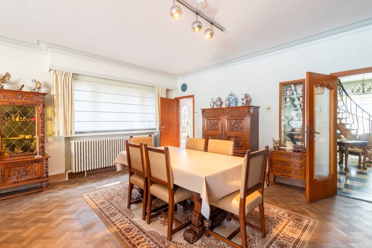 In de prachtige Maria-Henriettalei in Hoboken, vlak bij het centrum, ligt deze karaktervolle villa uit de jaren '60. Verschillende renovaties werden in de loop der jaren uitgevoerd, telkens met behoud van het originele karakter. Meteen bij het binnenkomen valt dit op: de statige inkomhal met houten trap, de elegante vloer en mooie lichtinval geven meteen een ruime eerste indruk. Aan de voorzijde van de woning bevindt zich een kamer, momenteel ingericht als bureauruimte en een tweede kamer die ingericht is als hobbyruimte. Beide ruimtes zouden ook een ideale praktijkruimte met wachtzaal kunnen vormen,waarbij privé én praktijk perfect gescheiden kunnen zijn. Achteraan ligt de lichtrijke leefruimte op parket, met mooie hoge plafonds en sfeervolle haard. De keuken is ruim en voorzien van Gaggenau toestellen. Op de eerste verdieping zijn er 5 slaapkamers, waarbij de master bedroom een ensuite badkamer heeft, voorzien van een ligbad, inloopdouche, toilet en dubbele wastafel (ook toegankelijk via hal). De tweede verdieping bestaat nog eens uit een mooie nachthal, twee slaapkamers met extra doorloopkamer die als wasplaats kan fungeren. Ten slotte is er nog een grote zolderruimte. Echte eyecatcher is de heerlijke tuin achteraan. Met achteraan een zonnig terras in Vietnamese marmersteen en een prachtig zwembad is het hier heerlijk vertoeven!