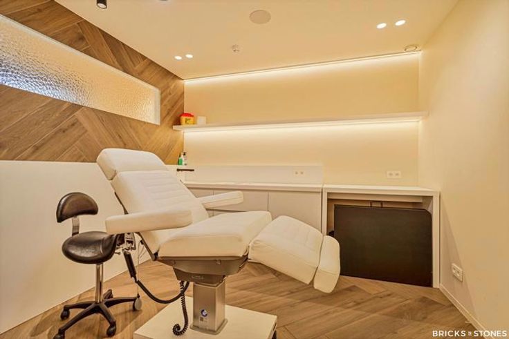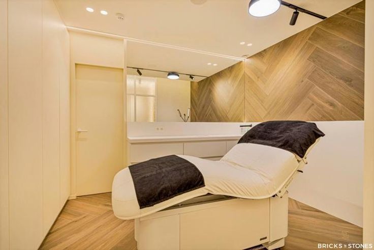 Het pand is momenteel uitgebaat als skin clinic en ingedeeld met ruime ontvangstruimte met 1 onthaalbalie en barmeubel met Quooker kraan, 2 ijskasten en lavabo. Het bestaat daarnaast uit 4 zeer grote behandelcabines. Hierdoor ook uiterst geschikt voor andere vrije beroepen : dokters cabinet, tandartspraktijk, kinesitherapie , logopedie, psychologe, ….