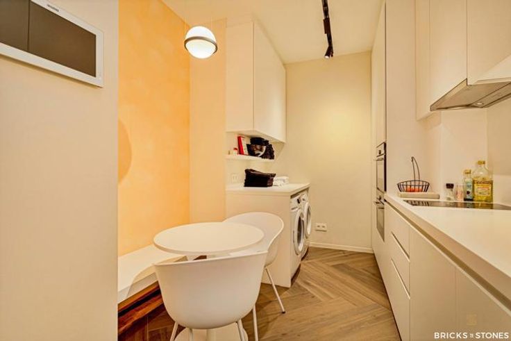 Handige keuken uitgerust met 1 oven en 1 combi microgolf-oven, een inductie kookplaat, enkele lavabo en aansluiting voor wasmachine en droogkast. Ideaal voor een rustige en ongestoorde lunchbreak. Achteraan nog extra aparte ruimte die momenteel gebruikt wordt als bureau met sanitair waar u zich nog snel kan opfrissen na een drukke werkdag of die je kan gebruiken als een extra behandelruimte.