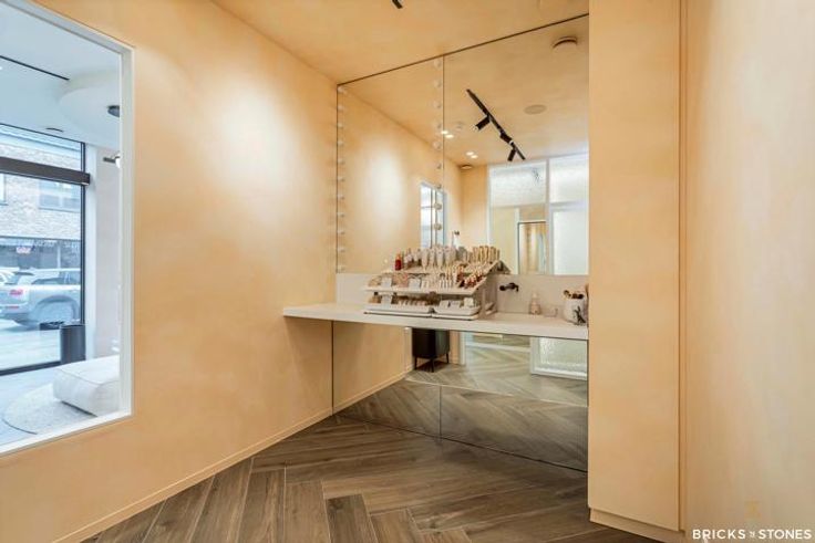 Vooraan aan de straatzijde bevinden zich grote ramen die zorgen voor een maximale zichtbaarheid en uitnodigende uitstraling van uw zaak.