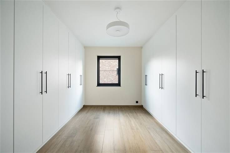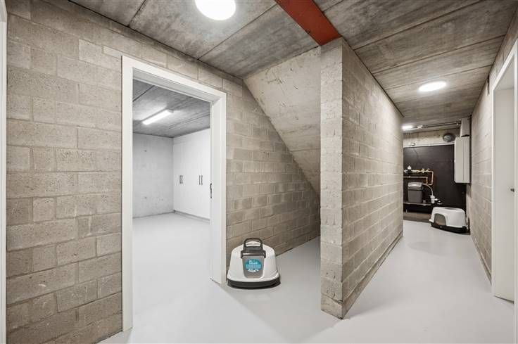 Deze volledig en luxueus afgewerkte nieuwbouw, is op alle vlakken instapklaar. Zo omvat de volledig aangelegd tuin een mooi zwart tuinhuis, omheining, grasveld, levende hagen en een gunstig georiënteerd terras. Deze moderne woning met zwarte alu-ramen en gelijmde MBI-betonsteen, zit genesteld aan het einde van een doodlopende straat, naast een eiken/sparrenbos. U parkeert hier maximum 4 wagens (wachtleiding laadpaal). Het extreem lage energieverbruik, blijkt uit het E-peil van 6, dat bereikt wordt dankzij afstandsbediende screens, rolluiken, veralgemeende vloerverwarming, warmtepomp, 10 zonnepanelen en een doorgedreven isolatieniveau. Deze woning verdient zeker de prijs voor de mooiste kelder, afgewerkt met ingebouwde kasten, mooie deuren,waterverzachter, dataleiding, gladde vloer, etc. Op het gelijkvloers zijn er eyecatchers in overvloed zoals 2 grote schuiframen, smeeddeur met glas, een open keuken met een eiland van 3m, een gashaard, schilderwerk (2023), XL-berging met inbouwkasten, etc. De witte keuken is voorzien van een Quooker, veel lades en ATAG-apparaten: kookplaat met ingebouwde afzuiging, koelkast, 2 combi-ovens en een vaatwasser. Boven verrassen de 4 ruime kamers, de vele inbouwkasten, de beklede betontrap en de lichtinval. De douchekamer met inloopdouche en lavabomeubel met kolomkast, beschikt net als de badkamer over één verwarmde wand. In de badkamer vinden we buiten het ruime bad, ook een gelijkaardig meubel met spiegelkast.