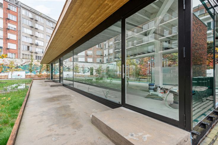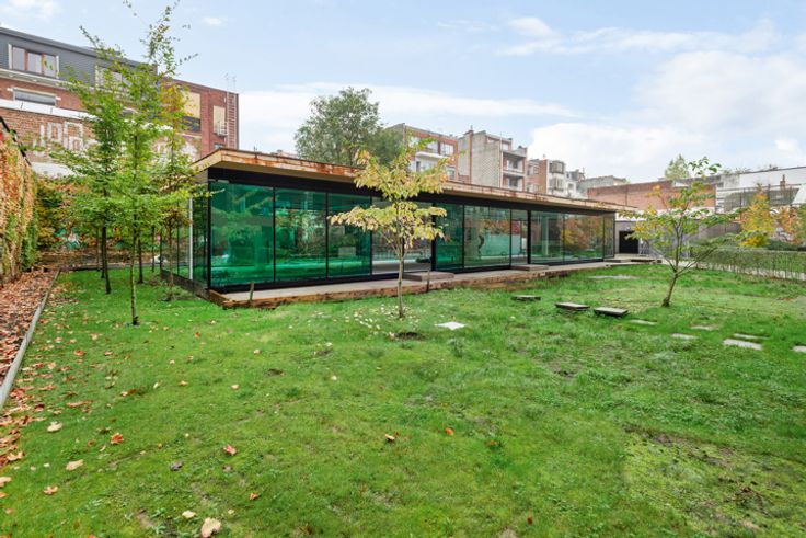 Wie goed kijkt, herkent hier een zeer gekend gebouw. Dit is nl. het "glazen paviljoen" dat gedurende 24 jaar mocht pronken aan het Rubenshuis op de Wapper in Antwerpen. Het 35 meter lange paviljoen werd ontworpen door Vlaamse toparchitect Stéphane Beel. Het gebouw kreeg een nieuwe locatie: Gelegen in een rustig binnengebied, omgeven door een oase van groen en toch centraal in de stad, vlakbij het station, Keyzerlei, Meir….