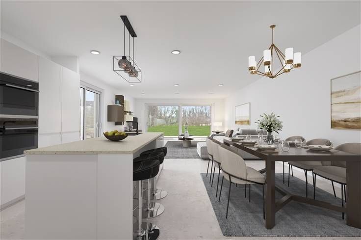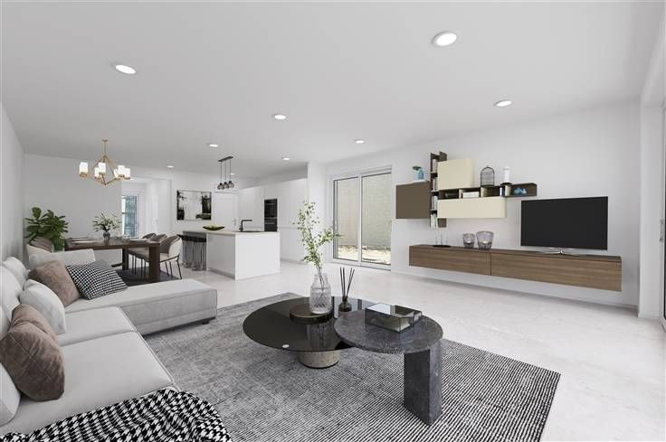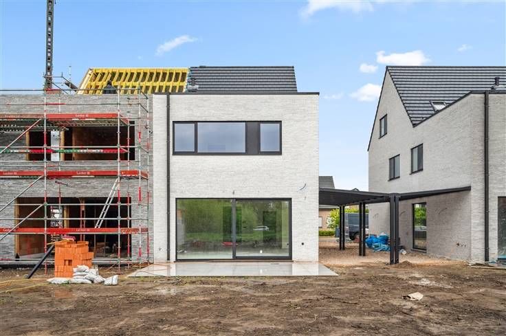 We ontdekken hier een luxueuze nieuwbouwwoning op een perceel van ± 370m², midden in een rustige villawijk, met uitzicht op groen. De korte afstand tot zowel E19 als A12, is ideaal voor pendelaars. Thuiswerkers doen hun voordeel met een bureel/kamer, grenzend aan de ruime inkom. U beschikt over internet in de kamers, internetkabel voor een toekomstige thuisbatterij en bekabeling voor toekomstige laadpaal en camera. Details tillen het huis ver boven het gemiddelde: buitenlichtpunten, videofoon, carport, hogere binnendeuren, 2 buitenkranen, etc. Het E-doelpeil onder de 20, wordt mee behaald met behulp van 12 zonnepanelen, warmtepomp, algemene vloerverwarming (koeling mogelijk), 12cm vloerisolatie, 14cm muurisolatie en 22cm in het dak. Esthetisch scoort het huis, door een combinatie van vlakke dakpannen, zinken goten en zwarte alu ramen met een witte gevelsteen, met passende voegwerkkleur. In de keuken met eiland, zijn volgende apparaten voorzien: vaatwasser, koel/vriescombinatie, microgolfoven met grill en kookplaat met geïntegreerde afzuiging. Afgezien van een berging naast de keuken, staat boven nog een wasplaats ter beschikking. De grote badkamer omvat een mooi afgerond acrylbad, speciaal kraanwerk, een dubbel lavabomeubel en inloopdouche. De master bedroom, beschikt over een aanpalende dressingruimte. De prachtige kamer onder dak, kan bogen op een en suite badkamer, met hangtoilet, inloopdouche en enkel lavabomeubel. Op de oprit naast de woning, kunt u tot 4 auto’s
