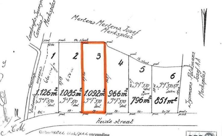 Aan de Heidestraat (13), lot 3 van de verkaveling 078/110 dd 22/09/1975, kadastraal gekend sectie F nummer 370/C/P0000, met een oppervlakte van 1092 m². Stedenbouw: woongebied (achteraan deels agrarisch gebied). P-score B.