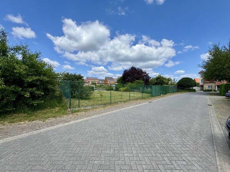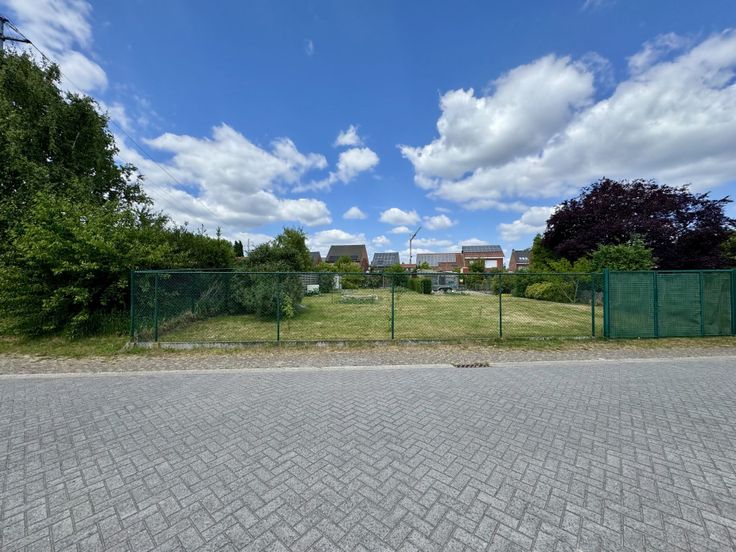 De bouwgrond is volledig omheind en voorzien van een dubbele poort aan de straatzijde.