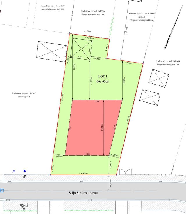 Door de mooie breedte van 16,8m kan men een vrijstaande woning met maximale breedte van 11,28m, met een maximale diepte van 14,21m, oprichten.