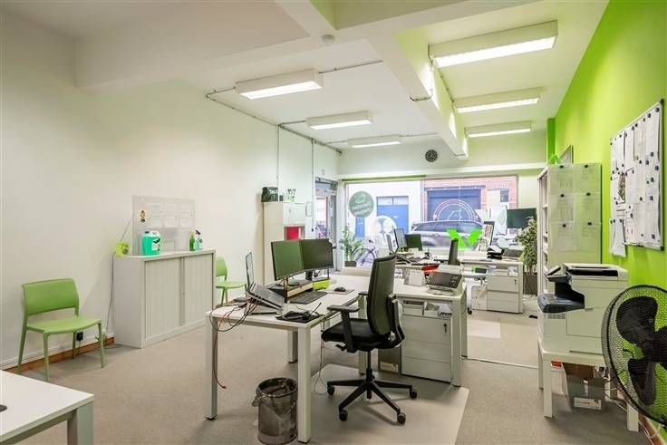 2 centraal gelegen gelijkvloers kantoor- / handels ruimte in Merksem. Dit pand is geschikt voor verschillende doeleinden en gelegen in een zijstraat van de bruisende Bredabaan, te Merksem. De linkse ruimte was ingericht als kantoor en de rechtse zijde als strijk atelier, hiervoor werd het elektrisch vermogen verzwaard. Verder zijn er 2 toiletten voorzien en een eenvoudige kitchenette. Beide panden hebben een afzonderlijke inkomdeur voorzien van rolluiken, achteraan is er een deur tussen de 2 ruimtes voorzien waardoor U vlot van het ene naar het andere pand kan. + bruikbare vloeroppervlakte per pand ca. 75m² + aparte energie meters + water is gemeenschappelijk met 1 tussen meter voor beide panden + deze verkoop zijn de 2 panden (per pand €149.000,- verplicht beide aan te kopen) als koper kan U nadien de panden splitsen indien gewenst + huur vrij / beschikbaar bij akte + EPC label-C