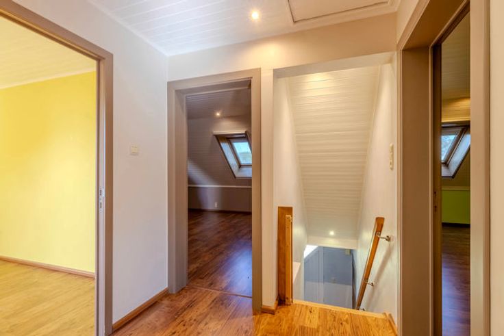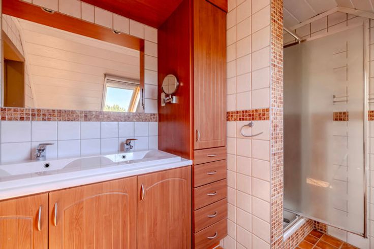 1V: nachthal; 3 slaapkamers; badkamer bevat bad, douche, dubbele lavabo en toilet; 2e badkamer met lavabo, douche en toilet; 4e slaapkamer / bureau / beroepsruimte toegankelijk via nachthal of aparte trap.