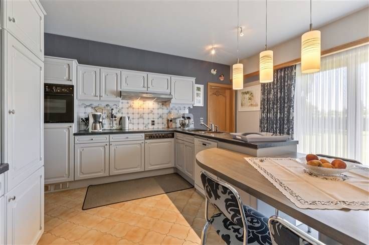 Op de Geelsebaan in Klein-Vorst (Laakdal), treffen we deze zeer ruime gelijkvloerse woning, met een perceeloppervlakte van 19a30ca. De woning is gelegen op fietsafstand van het centrum van Klein-Vorst en Tessenderlo met al hun winkels, supermarkten, scholen, horeca en het openbaar vervoer. Op slechts 1 km van de woning bevindt zich een warme bakker en supermarkt Carrefour en de plaatselijke basisschool. De op- en afrit van de E313, die jullie vlot naar Hasselt of Antwerpen brengt, bevindt zich op slechts enkele minuutjes rijden van de woning. We betreden de woning via de ruime inkomhal (14,62 m²) die toegang biedt tot de lichtrijke leefruimte (58,8 m²). Grote raampartijen zorgen voor natuurlijke lichtinval en een open gevoel. De houtkachel voegt warmte en gezelligheid toe op koude winterdagen. Via de woonkamer komen we in de luxueuze veranda (29,51 m²) met uitzicht op het zwembad en de tuin, een échte meerwaarde in deze woning. De veranda is voorzien van airconditioning en een pelletkachel. Aansluitend bevindt zich de ruime keuken (22,28 m²), volledig uitgerust met een vaatwasser, keramisch kookvuur, dampkap, oven, dubbele ingebouwde koelkast en wasbak. De grote raampartijen zorgen ook hier voor veel lichtinval. Achter de keuken ligt een handige berging (8,83 m²) met aansluiting voor wasmachine en droogkast, en toegang tot de kelder (35,10 m²) met voor de rest ook nog kruipkelder. Via de nachthal bereiken we de drie ruime slaapkamers (13,45 m², 13,55 m² en 22,48