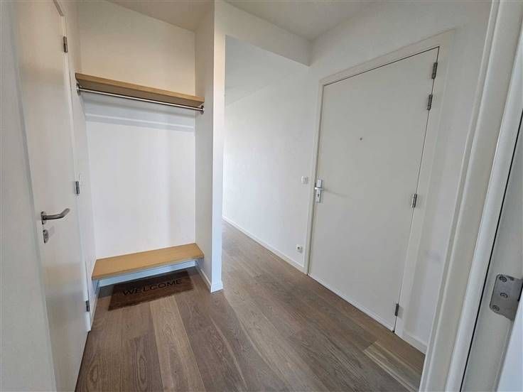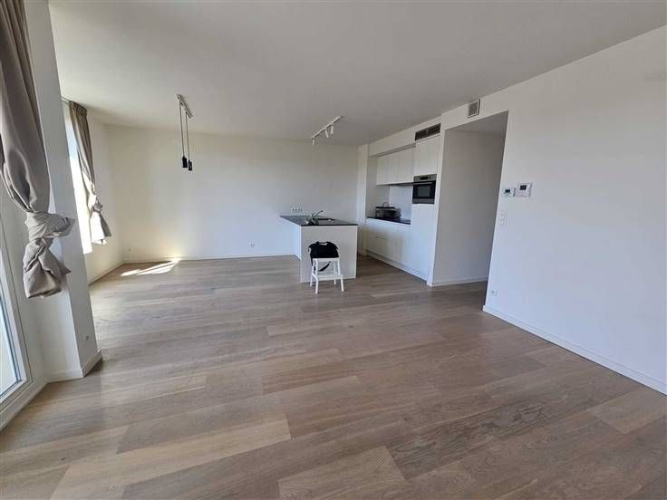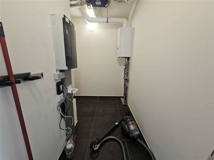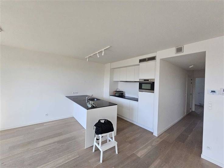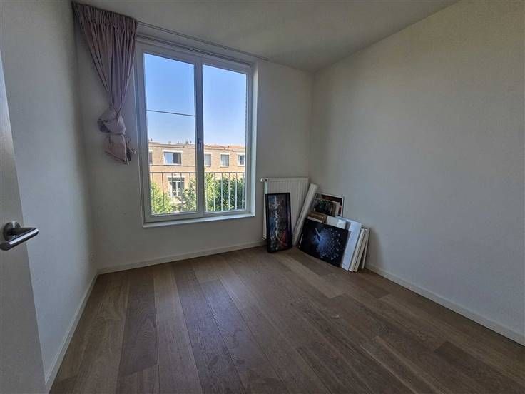 Het Groen Kwartier te Antwerpen: een uniek stukje groen in het centrum van de stad. Dit recent nieuwbouwappartement op de 2de verdieping heeft 2 slaapkamers, een ruime living met leef- en eetruimte en keuken (7,22 m²), badkamer, aparte toilet, berging en terras! Bij het appartement hoort ook een autostaanplaats (P 37) en een kelderberging (A 25). Instapklaar! Indeling: hal: 2,38 * 2,07 = 4,93 m² badkamer: 2,38 * 1,82 = 4,33 m² toilet: 0,95 * 1,5 = 1,43 m² berging : 0,9 * 2,89 = 2,6 m² slaapkamer: 2,77 * 4 = 11,19 m² slaapkamer: 2,89 * 2,77 = 8 m² leefruimte en eetruimte: 7 * 5, 77 = 40,5 m² keuken (7,22 m²) open terras: 2,73 * 2,1 = 5,73 Het kadastraal inkomen bedraagt voor de overdekte parkeerplaats: 96 Voor het appartement: 1014 Voor de kelder: 4 De trimestriële voorschotten bedragen 394,77 € (4 x per jaar), vaste kosten zijn dus 1579,08 € per jaar. (éénmalig werkkapitaal in te brengen van 496 €)