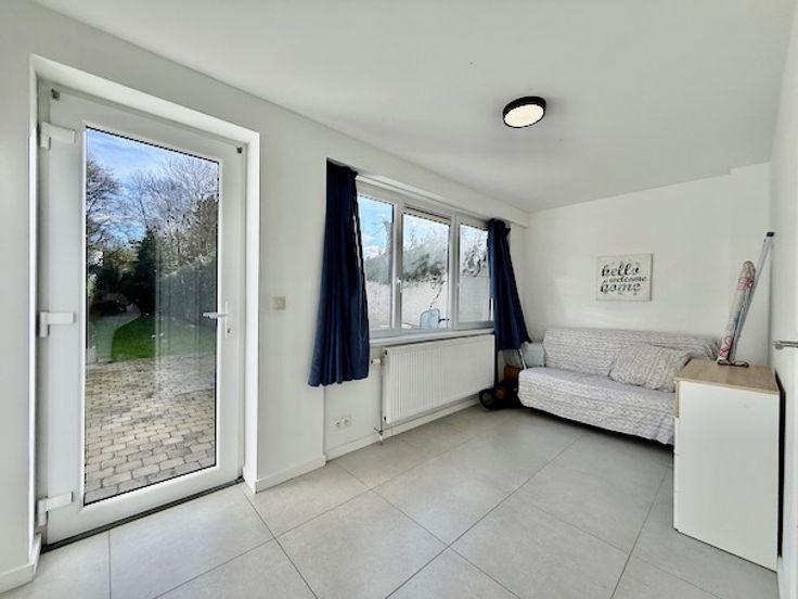 Achteraan, met toegang naar de tuin, een slaapkamer/hobbyruimte/logeerkamer van 11 m² + aparte wasplaats.