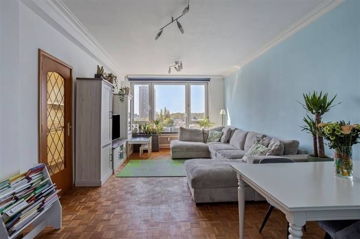 Instapklaar appartement (83 m²) met 2 slpks., terras en binnentuin. Het pand is top gelegen en is vlot bereikbaar met bus, tram, trein, auto en velo. De snelweg bereik je in luttele minuten, met ruim aanbod aan velo-stations in de omgeving en ook aan openbare vervoersmogelijkheden is er geen gebrek. Kortom: de locatie bij uitstek voor wie wil profiteren van een goede bereikbaarheid en een vlotte verbinding tot de stad en daarbuiten! Het appartement bevindt zich op de vijfde verdieping in een gebouw van 8 hoog, waarvan het dak geïsoleerd is. De vaste kosten bedragen momenteel ca. €250/maand en zijn alles inclusief (verwarming, water, syndicus, blokpolis, lift …). De verwarming is collectief en de elektriciteit is conform. Het appartement is goed onderhouden, waardoor je hier zonder ingrijpende werken je intrek kan nemen. Je komt binnen in de open hal, die aan de voorzijde uitgeeft op de woonkamer (27 m²), waar je kan genieten van een uitgestrekt zicht over de omgeving. De keuken is 8 m² groot en uitgerust met alle hedendaags comfort. Grenzend hieraan is er een aparte berging/wasplaats (2 m²) aanwezig. Centraal treffen we de badkamer (4 m²), die voorzien is van een ligbad, lavabomeubel en handdoekdroger. De wc is apart. Achteraan situeren zich de 2 slaapkamers van ca. 9 m² en 16 m². Er is ook een videofoon aanwezig, gepantserde voordeur en kelder. Bruikbare vloeropp. 83 m² ref.: EPC-certificaat. Voor meer info of een gratis schatting surf naar www.hansimmo.b